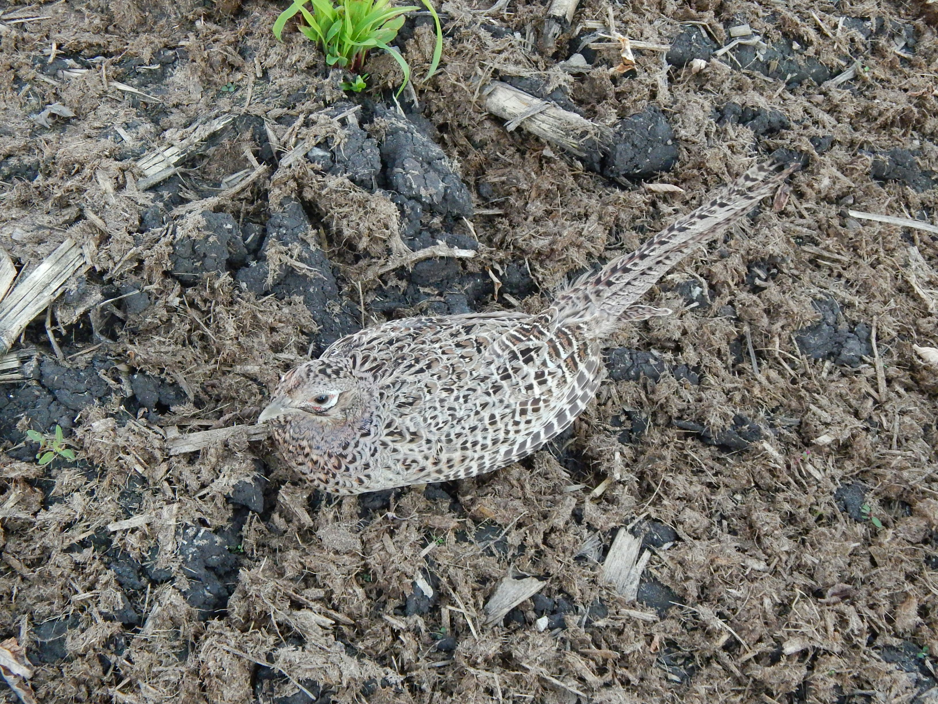 Males are dazzling with long, gently arching tails, gleaming green and blue-tinged heads, red facial wattles, and (in most individuals but not all) white neck rings. They are barred bright gold or fiery copper-red and have a confident swagger. Females (like the females of many ‘prey and target species’) are more subtle, camoflauged in speckled shades of brown, tan, and beige alid down in light bending patterns to help them hide while nesting and tending to their chicks. That’s maybe not so obvious when they’re walking across a green pasture or ankle-deep in spring barley (like they are round here right now) but the moment they nestle down against a background of baked earth or sun-dried grasses they almost disappear.
